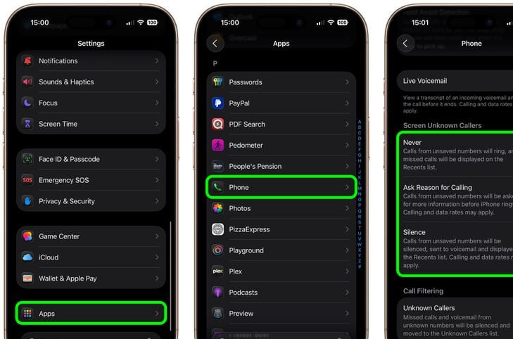 Щоб змінити налаштування, потрібно перейти до Налаштування ? Додатки ? Телефон і вибрати потрібний варіант у розділі «Фільтрування невідомих абонентів».