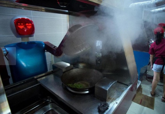 У китайському місті Куншан з’явився ресторан, у якому відвідувачів обслуговує незвичайний персонал. Разом з людьми в закладі працюють роботи, які виконують функції офіціантів, поварів та адміністраторів. Через це ресторан називається дуже просто: «Ресторан з роботами».