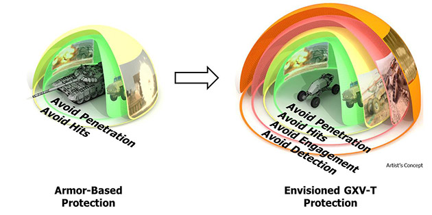 Основна ідея, запропонована DARPA, не в тому, щоб витримати ураження ворожою зброєю, а в тому, щоб уникнути розпізнавання противником та його атаки. Саме з таких міркувань нове покоління машин за програмою GXV-T також повинне отримати позадорожні властивості.