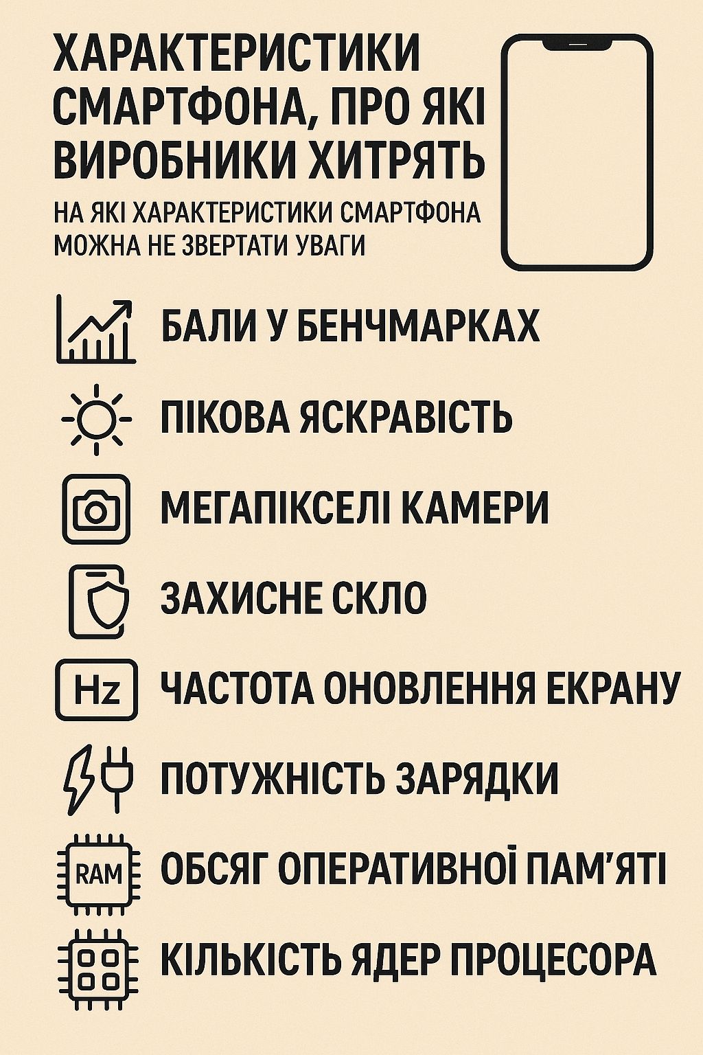 Ринок смартфонів перенасичений і маркетологи часто навмисно акцентують увагу на речах, які на практиці мало впливають на користування. Сучасні смартфони намагаються приголомшити користувача своїми характеристиками, змушуючи вас розбиратися з мегабайтами, мегапікселями, нітами, децибелами, дюймами, архітектурами ядер тощо. Але вам не потрібно розбиратися у всіх характеристиках смартфона, оскільки виробники не завжди говорять правду. Варто знати, які характеристики можна ігнорувати.